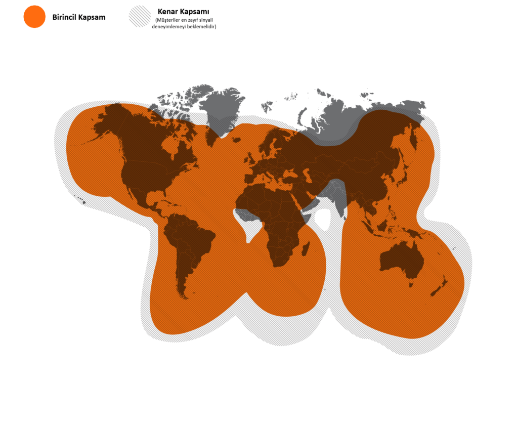 Tamamlanma oranları, belirli bölgeler için uygun frekansta tek bir paket mesajını 3 kez (orijinal iletim artı 2 tekrar) iletmek üzere ayarlanmış Uzaktan Telemetri Birimlerine (RTU) dayanmaktadır. Bu yalnızca kapsama alanı tahminidir. Gerçek Uzaktan Telemetri kapsamı, terminal konumuna, arazi özelliklerine, sinyal gücüne ve uydu iletişimlerini etkileyen diğer faktörlere bağlı olarak değişebilir. Kapsam değişebilir. Özellikler önceden haber verilmeksizin değiştirilebilir. Bu harita yalnızca potansiyel uydu kapsama alanlarını gösterir. Herhangi bir belirli ülkede hizmetin gerçek kullanılabilirliği hükümet onayına tabi olabilir.